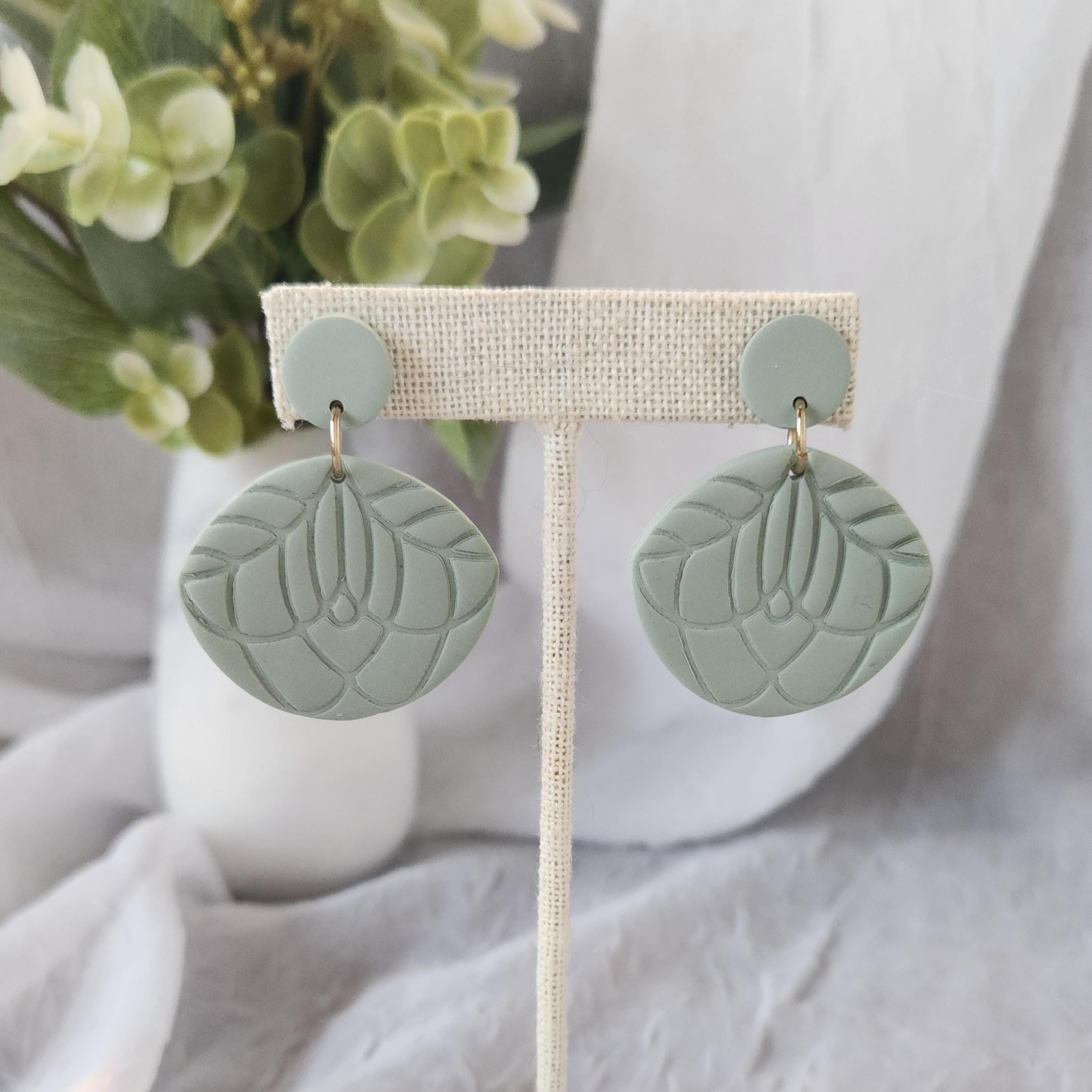 Introducing our Eucalyptus Green Abstract Arch Polymer Clay Earrings—the must-have accessory for the modern minimalist aesthetic. These geometric dangle earrings feature a unique, wavy leaf edge design that offers a soft botanical twist on the mandala design. Crafted for everyday wear, they are incredibly lightweight and feature nickel free posts, making them a perfect gift for her or a lovely treat for sensitive ears.
